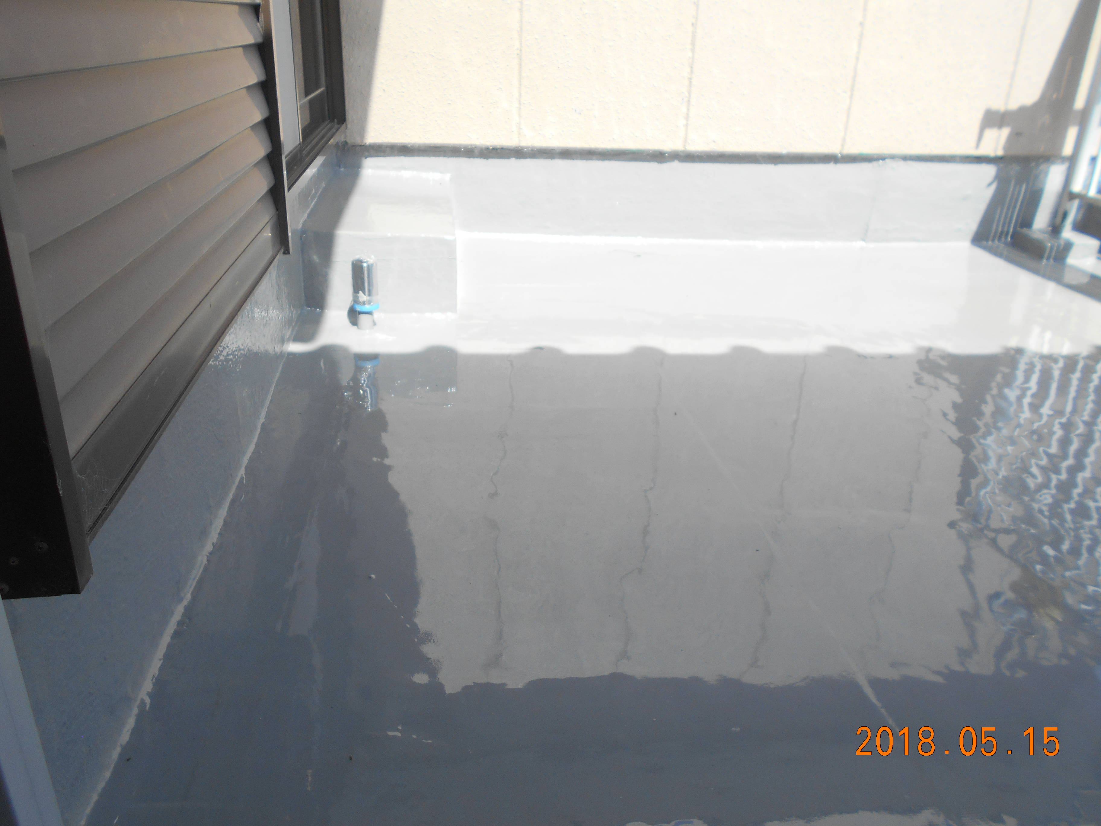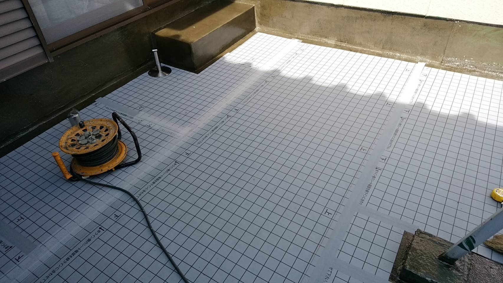 既設防水層撤去、廃材処理、下地処理、ウレタン塗膜防水・通気緩衡工法、マルチ工法、改修用ドレン、脱気筒取り付け