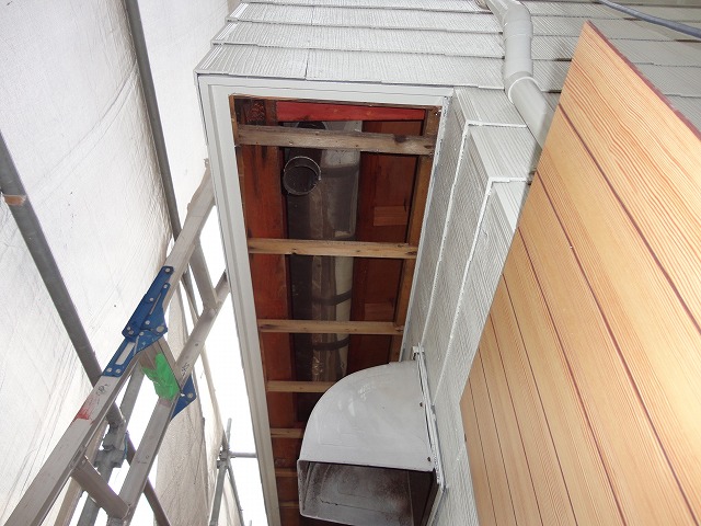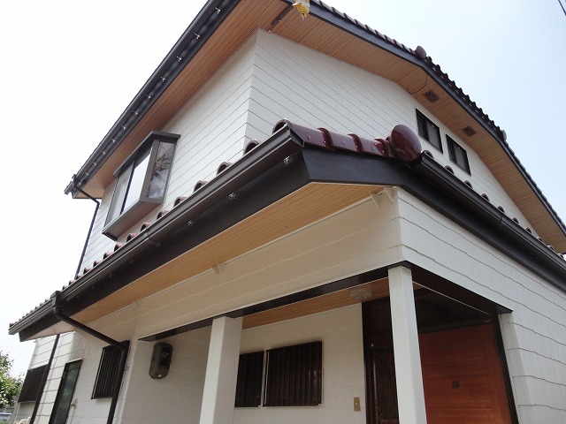 樋、破風板、軒天、ベランダ屋根、塗装の工事をさせていただきました。