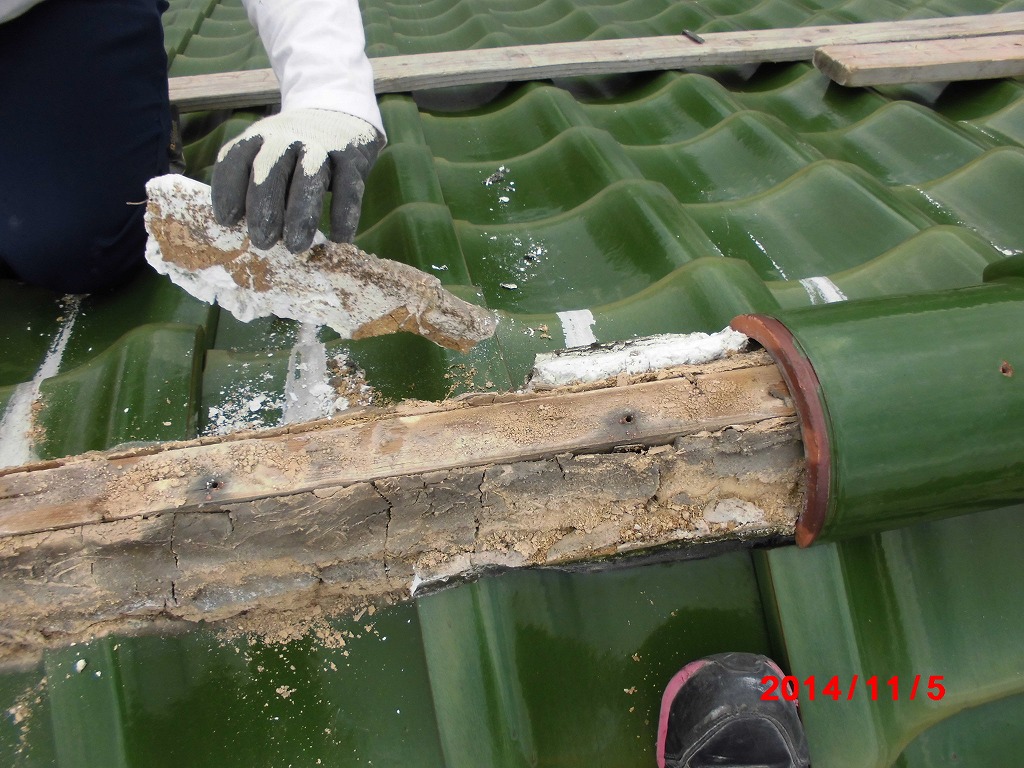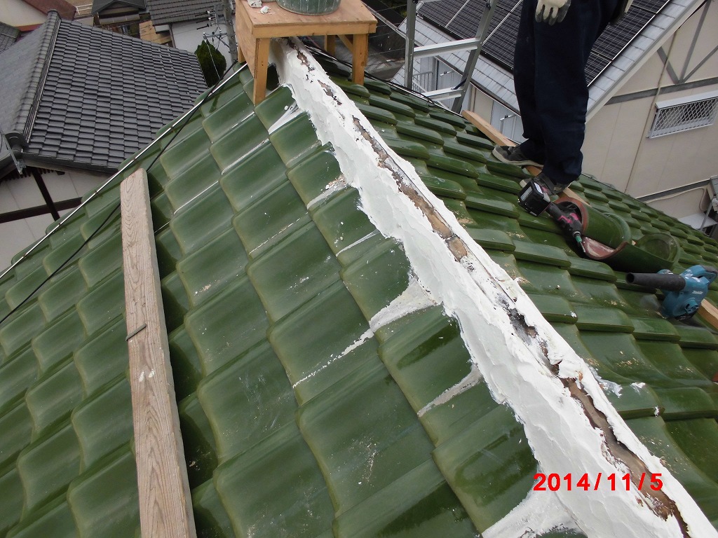 屋根の漆喰工事と棟の葺き戻し工事を行わせていただきました。