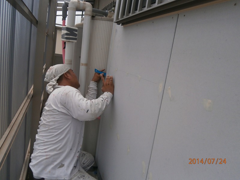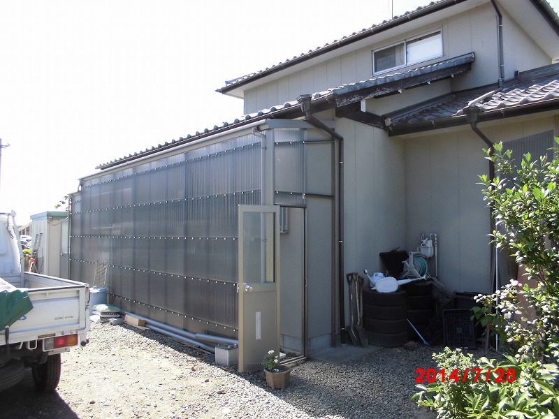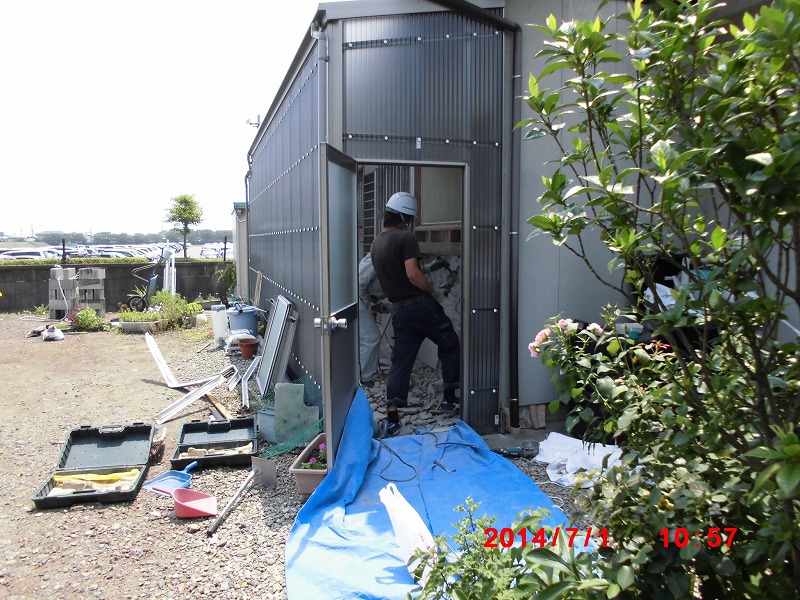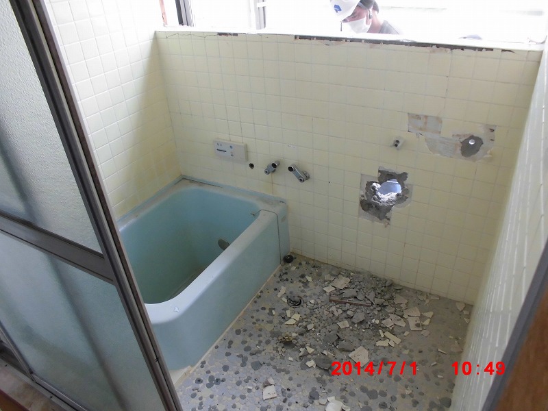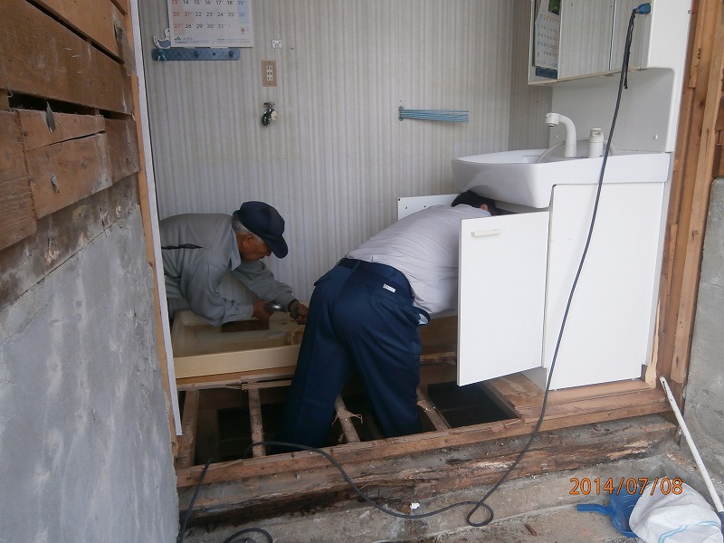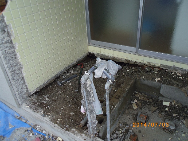 浴室工事 解体:テラス壁面屋根一部解体・外壁、浴室 解体撤去処分 基礎:増築部ブロック基礎【1.9メートル】 土間:ユニットバス下地土間コン打設【2.9平方メートル】 木:材料(土台、桁、柱、間柱、銅縁等)内装材(枠・PB・幅木・廻縁等) 大工手間(釘金物刻み含む) クロス:脱衣所壁紙貼り 水道:埋説配管やり変え 温水器移設及び配管工事 電気:温水器及び浴室配線工事 サッシ:面格子付引き違い窓ペアガラス【W=1620 H=700】 テラス西面ドア(Wカット加工) 外壁サイディグ貼り 外壁サイディング塗装 テラス:壁面屋根加工復旧アルミ躯体共 システムバス工事:LIXIL システムバス キレイユ1616 LBE RL 壁付けサーモ水栓追炊き穴加工 組付け施工費