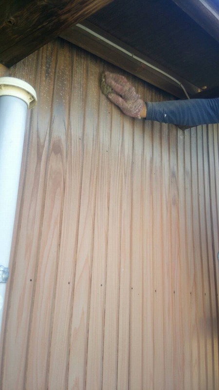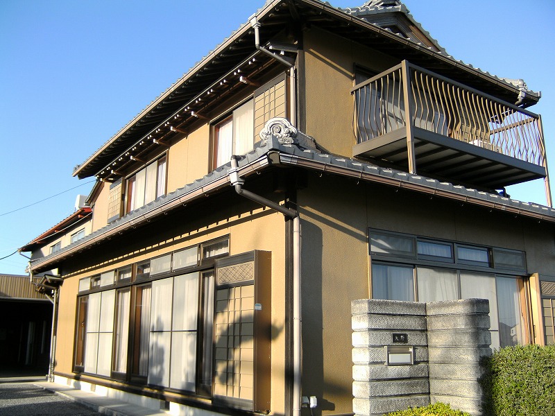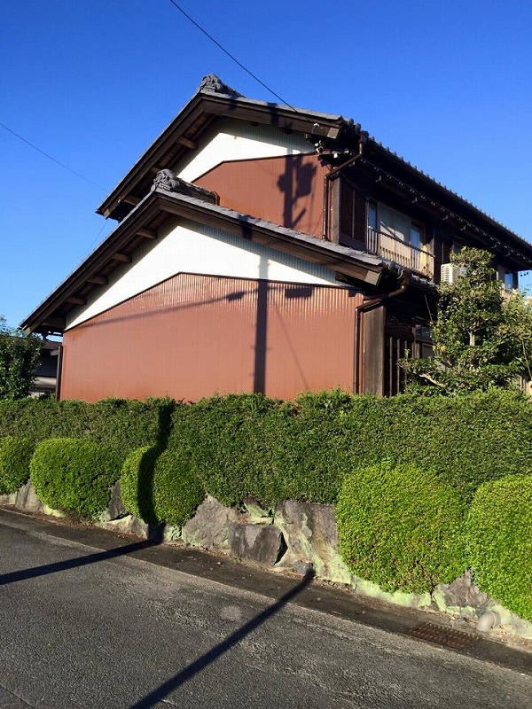 外壁塗装工事(母屋):仮設足場架け払い・シート養生【260平方メートル】【1式】 外壁:高圧洗浄・下塗りサビ止め・中塗りシリコン・上塗りシリコン【123.9平方メートル】 黒壁:下塗り・中塗りシリコン・上塗りシリコン【14.3平方メートル】 雑部「:小庇ケンエース2回塗り【1式】 出窓ウレタン2回塗り【1式】 破風板ウレタン2回塗り【40.5メートル】 軒樋ウレタン2回塗り【47.6メートル】 縦樋ウレタン2回塗り【30メートル】 小庇端部白塗り【1式】 戸袋 大2 小5【1式】 外壁塗装(離れ)仮設足場架け払い・シート養生【120平方メートル】【1式】外壁モルタル部のみ 高圧洗浄・下塗りフィラー・中塗りシリコン・上塗りシリコン【49.3平方メートル】 木部 玄関廻り柱・土台・柱等・オイルステン塗装