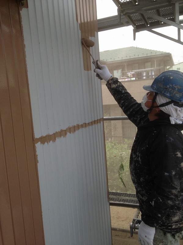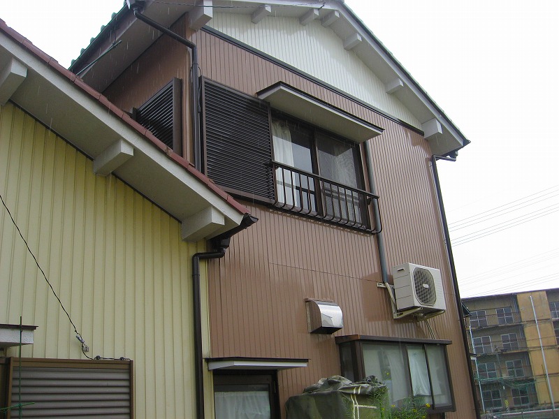 外壁塗装工事 仮設:仮設足場架け払い・シート養生【165平方メートル】 外壁:高圧洗浄・ケレン・下塗り(サビ止め)・中塗りシリコン・上塗りシリコン【96平方メートル】 雨戸・戸袋 大3枚 中15枚 ウレタン2回塗り【1式】