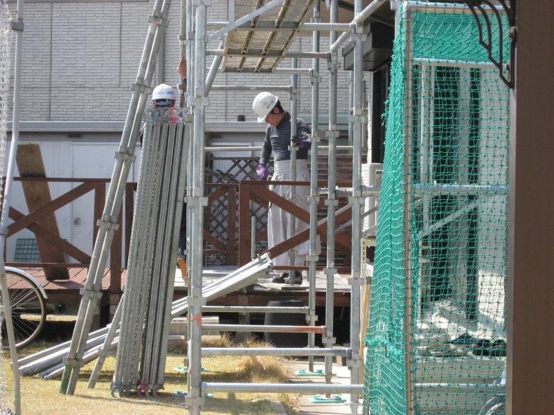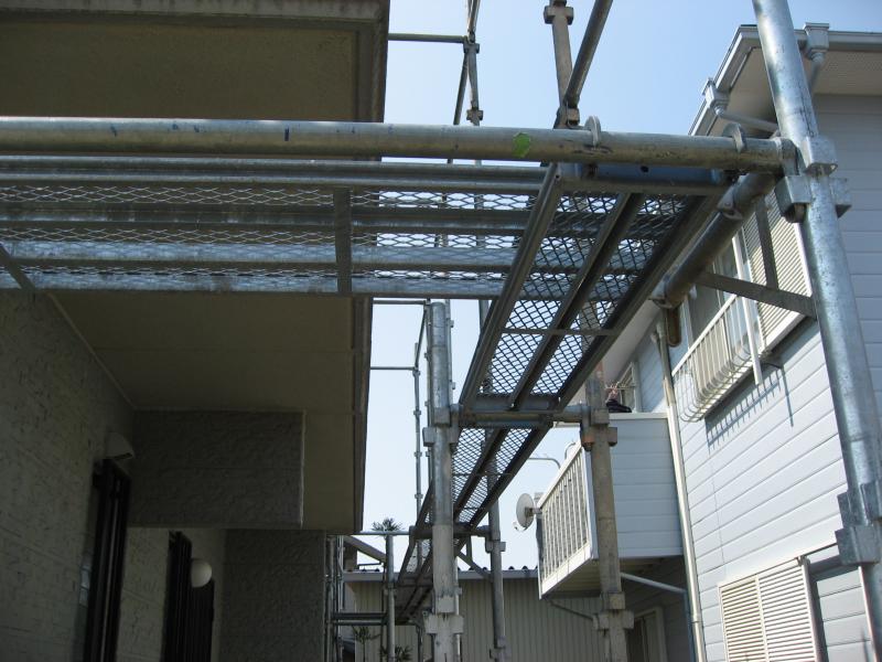 外壁塗装工事 仮設:仮設足場架け払い・シート養生【280?】 外壁:高圧洗浄【172?】 下塗りフィラー(専用)【172?】 中塗りアステック塗装【172?】 上塗りアステック塗装【172?】 破風板シリコン2回塗り【39.0m】 軒天ケンエース2回塗り【45.9?】 たて樋シリコン2回塗り【28.5m】 シール:継部打ち替えコーキング【184m】 窓廻り打ち替えコーキング【103m】 各所防水工事 屋上・ベランダタイルに防水露出パターン 屋上【101?】 ベランダ【21?】 高圧洗浄【122?】 下地処理カオチン系【122?】 ウレタン塗膜防水・通気緩衝工法DE-30Aマルチ【122?】 改修用ドレン取り付け【屋上6個ベランダ2個/8セット】 脱気筒取り付け【屋上2基ベランダ1基/3基】 端末コーキング処理【屋上39mベランダ25m/64m】 玄関庇:高圧洗浄【14?】 ウレタン塗膜防水通気緩衝工法DE-30Aマルチ【14?】 改修用ドレン取り付け【2セット】 脱気筒取り付け【1基】 端末コーキング処理【15m】 諸費:現場経費・管理諸経費【1式】