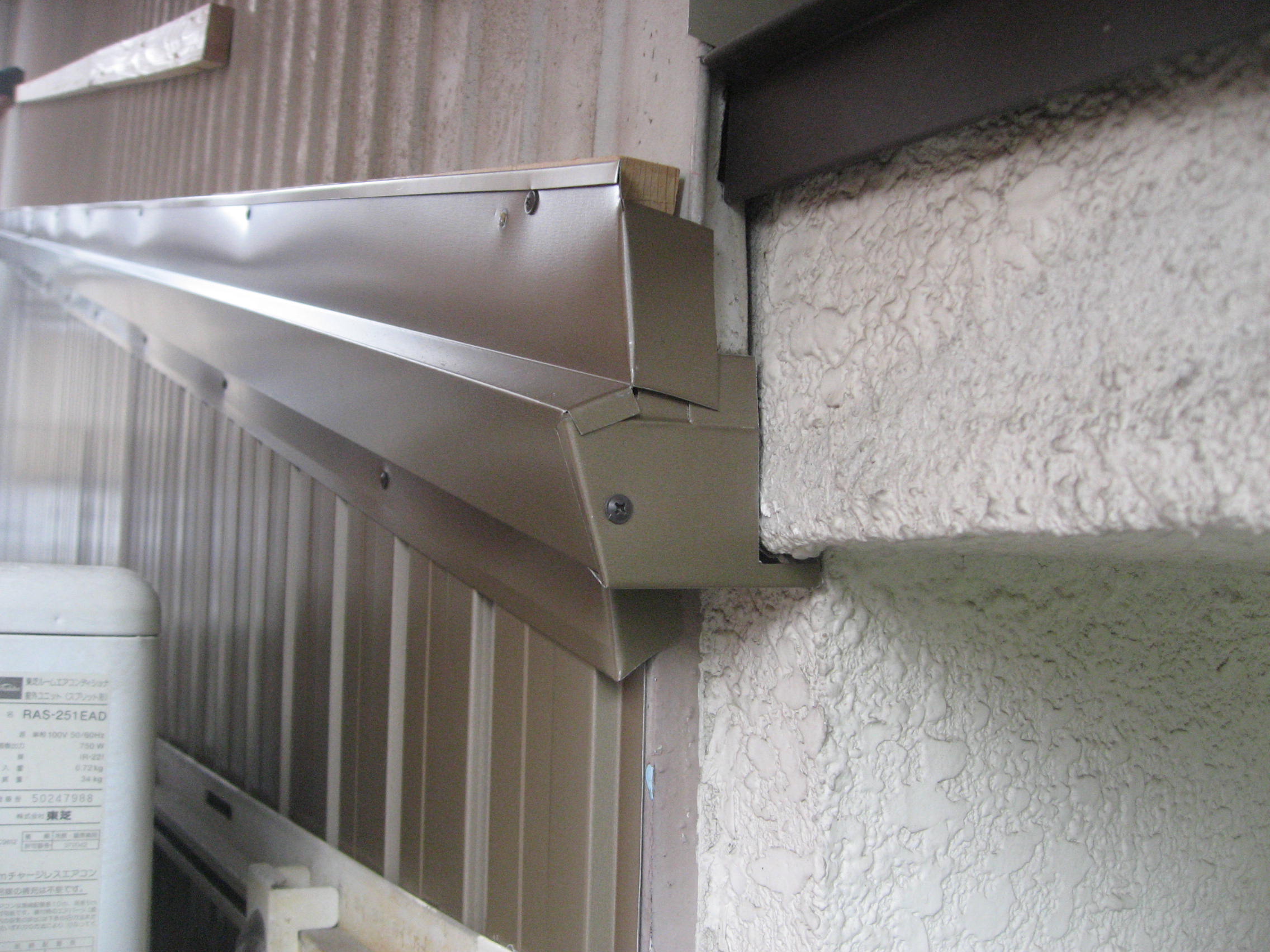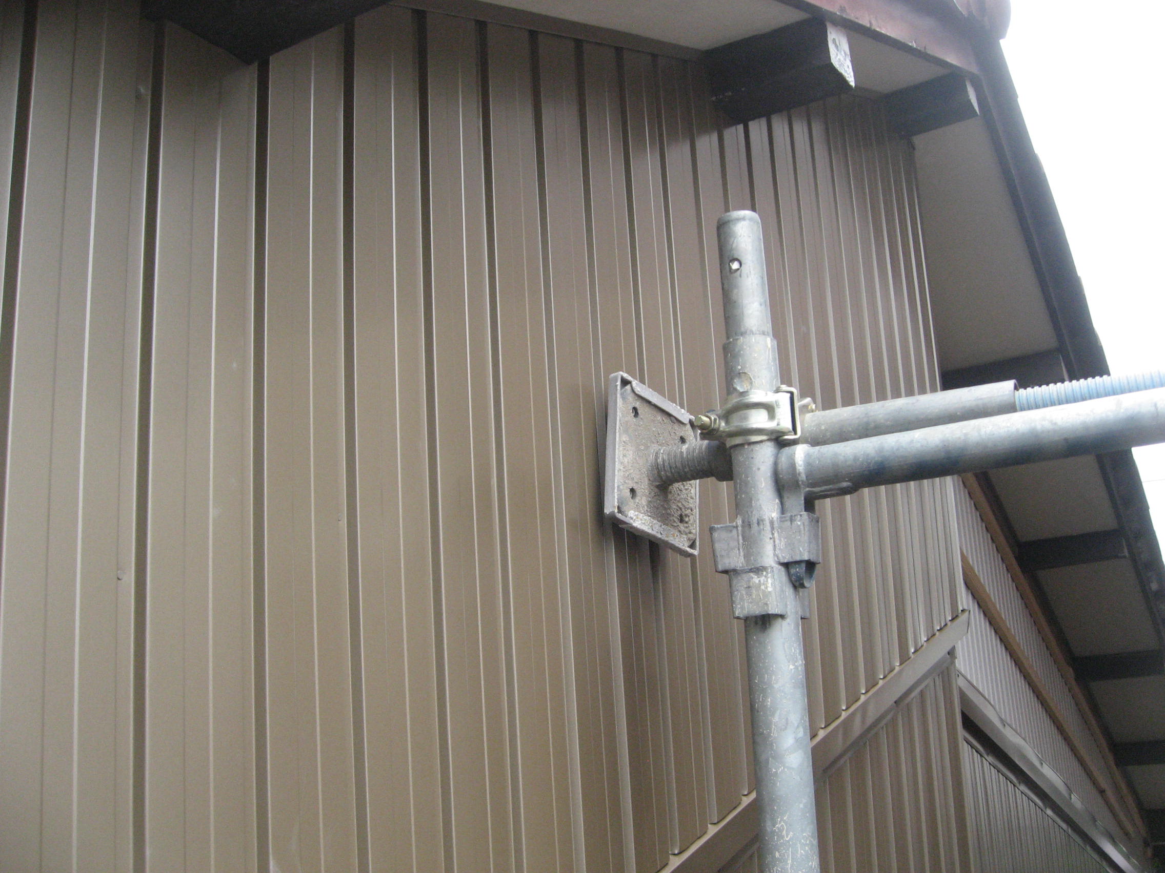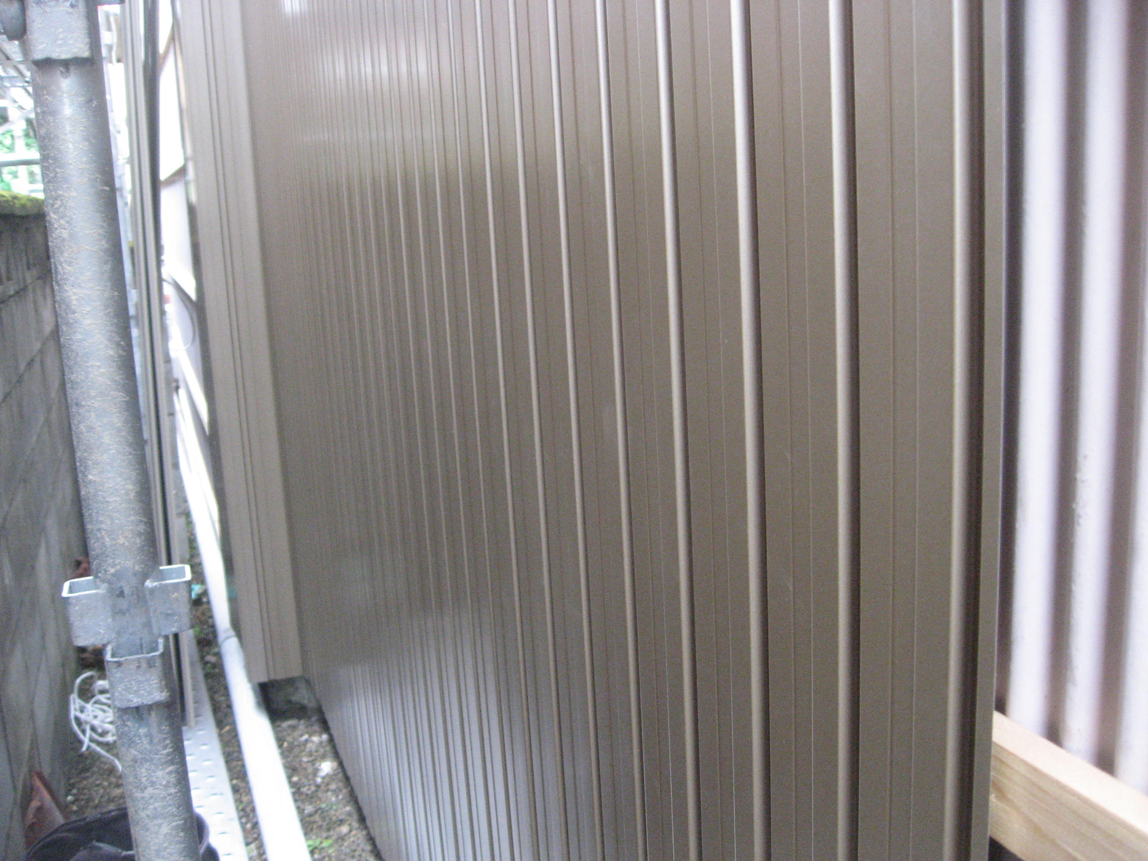 外壁トタン工事 西面(南):仮設足場架け払い【1式】 下地胴縁大工工事【36.0?】 角波ガルバリウム鋼板貼り【36.0?】 樋脱着【1式】 増築(東):既設トタンめくり、処分【4.5?】 角波ガルバリウム鋼板貼り【4.5?】 西面(北):外壁トタン下部役物【5.0m】