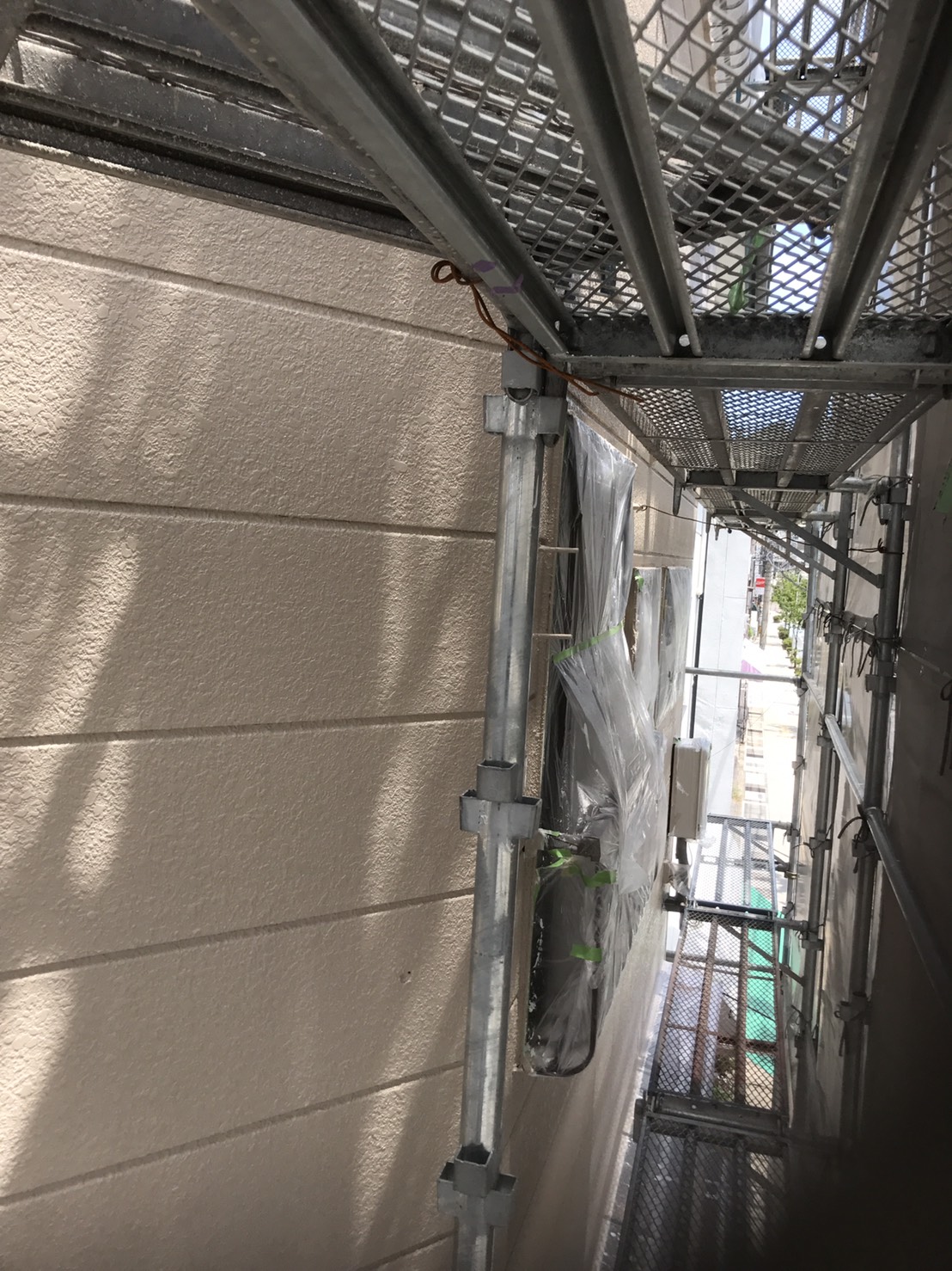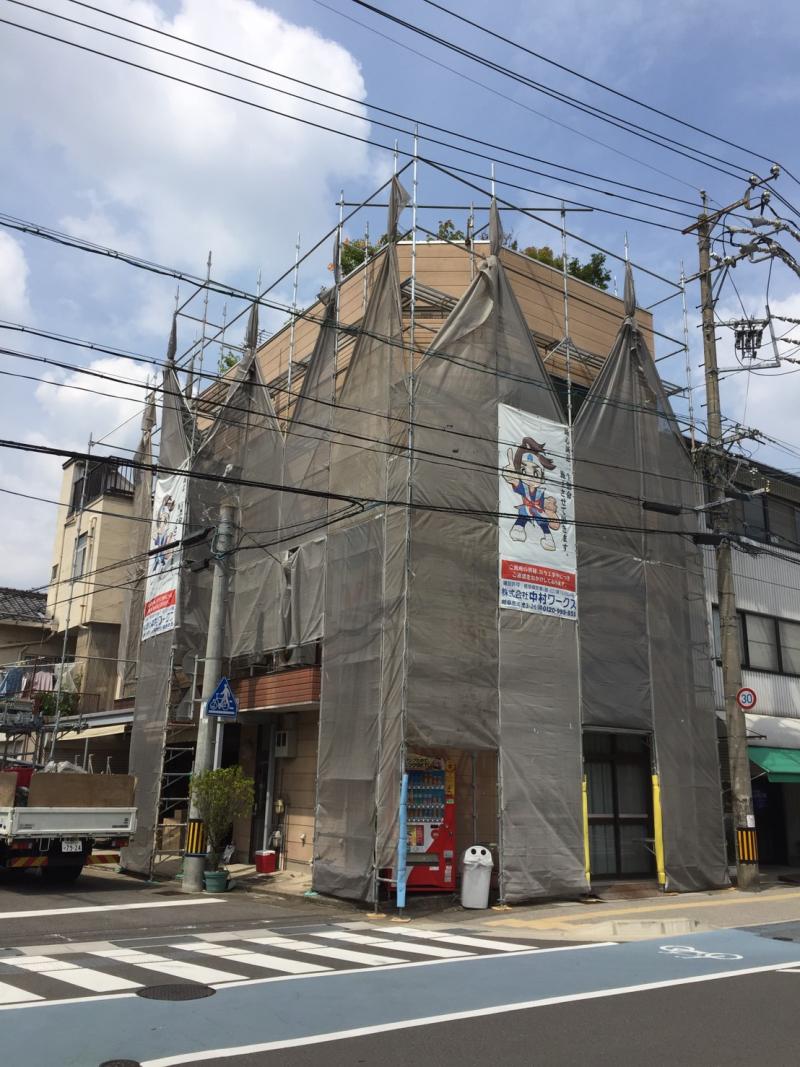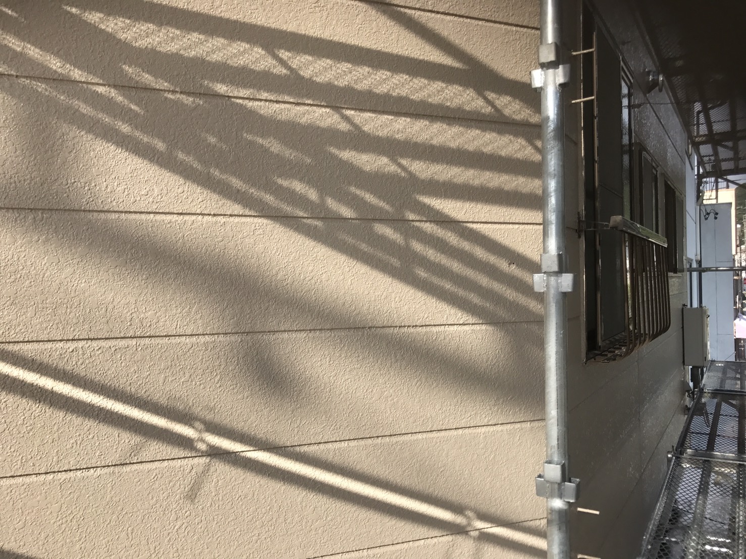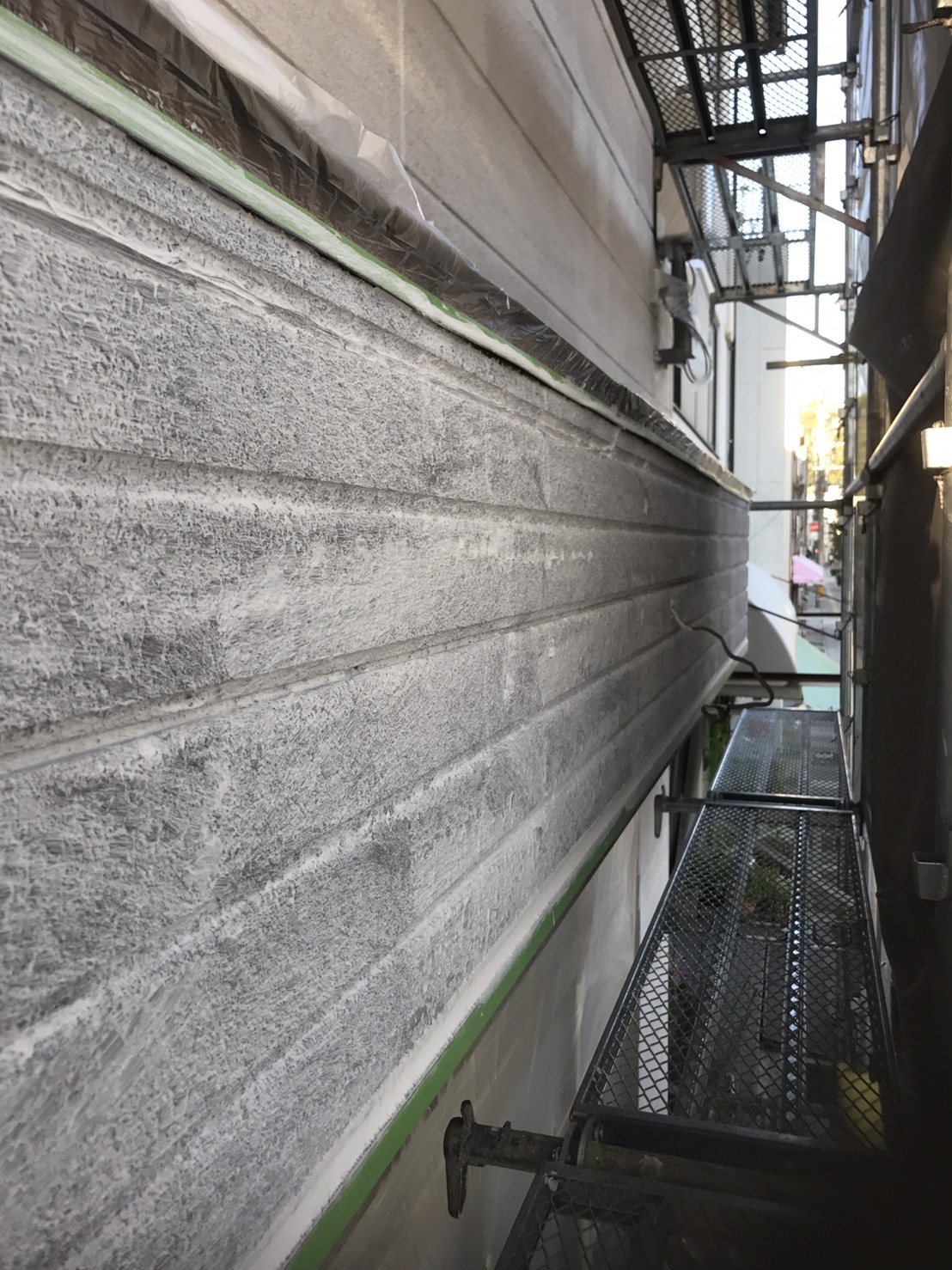 外壁塗装工事 仮設工事:仮設足場架け払い【1式】 外壁:高圧洗浄【150.0?】 下塗りフィラー日本ペイント【150.0?】 中塗りシリコン日本ペイント【150.0?】 上塗りシリコン日本ペイント【150.0?】 付帯:コーキング打替え工事【1式】 軒天ケンエース塗装【12.0?】 VU管シリコン塗装【18.0m】 パラペット塗装【1式】 道路占有許可【1式】
