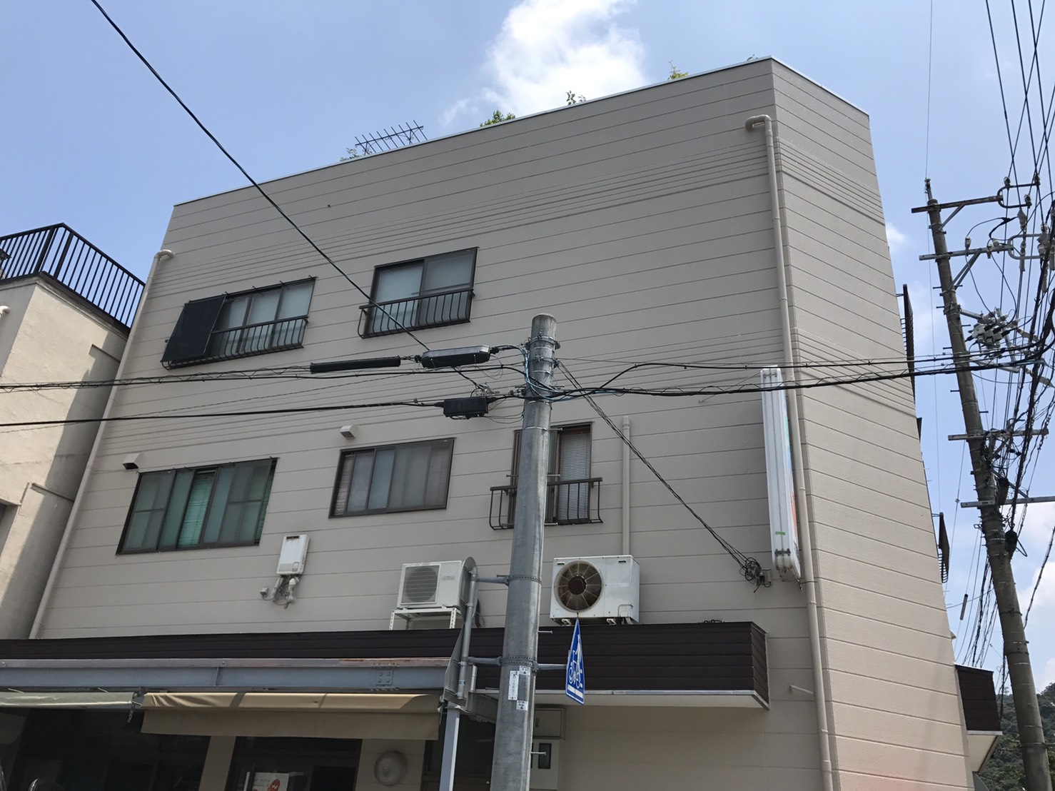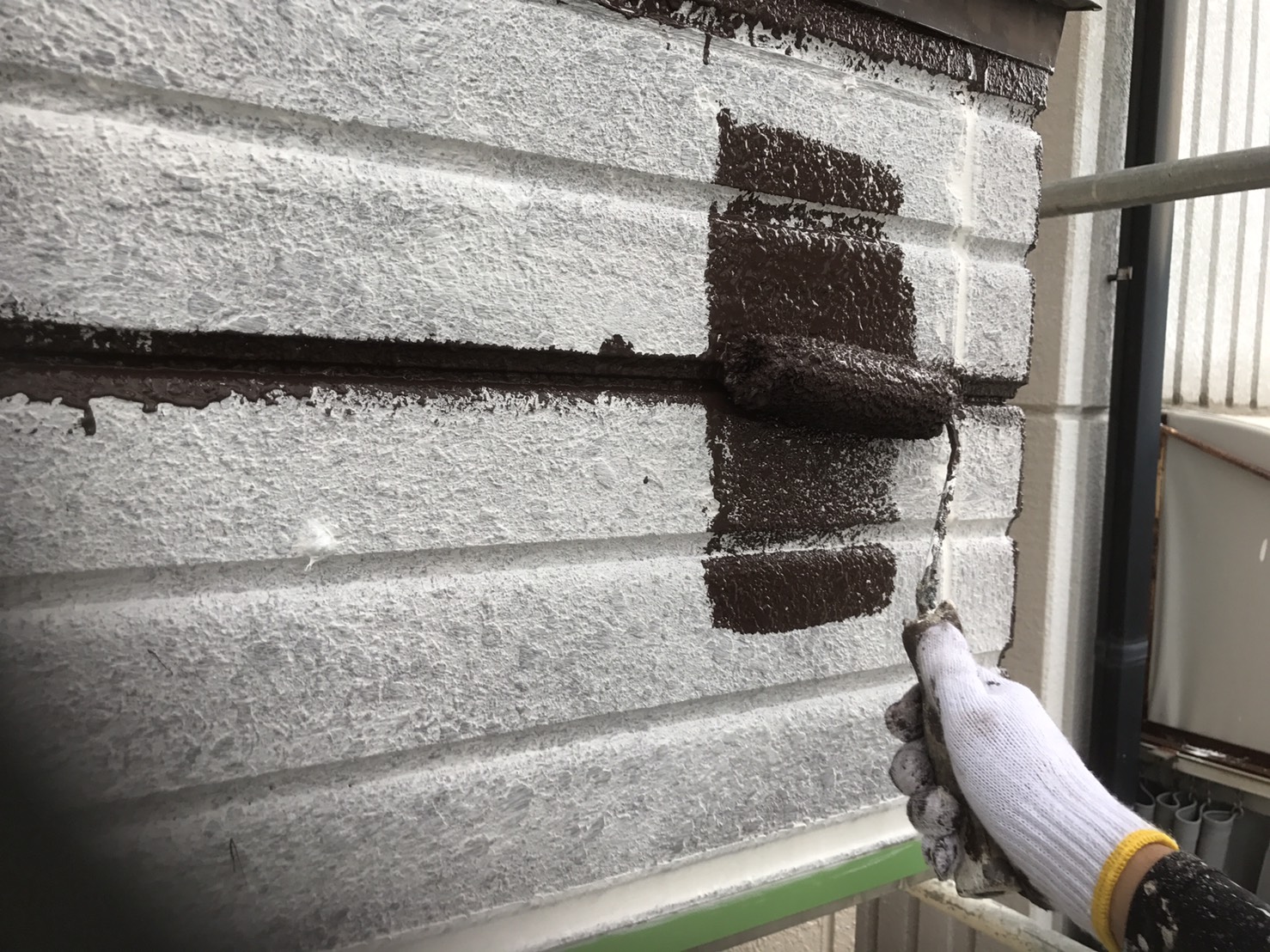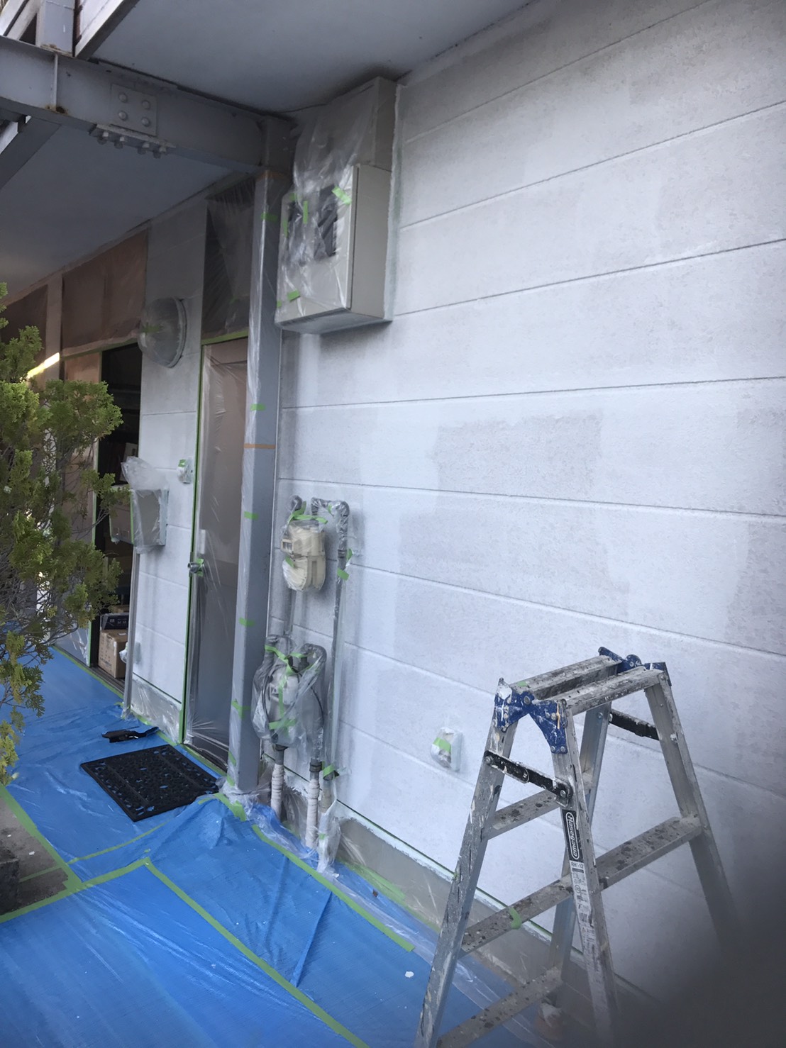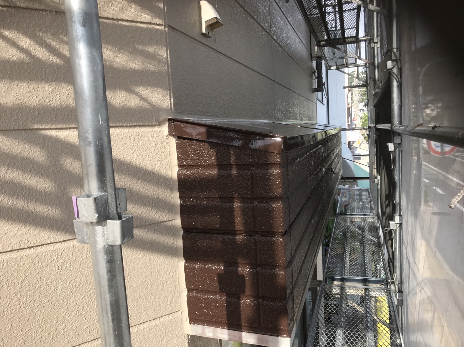 外壁塗装工事 仮設工事:仮設足場架け払い【1式】 外壁:高圧洗浄【150.0?】 下塗りフィラー日本ペイント【150.0?】 中塗りシリコン日本ペイント【150.0?】 上塗りシリコン日本ペイント【150.0?】 付帯:コーキング打替え工事【1式】 軒天ケンエース塗装【12.0?】 VU管シリコン塗装【18.0m】 パラペット塗装【1式】 道路占有許可【1式】