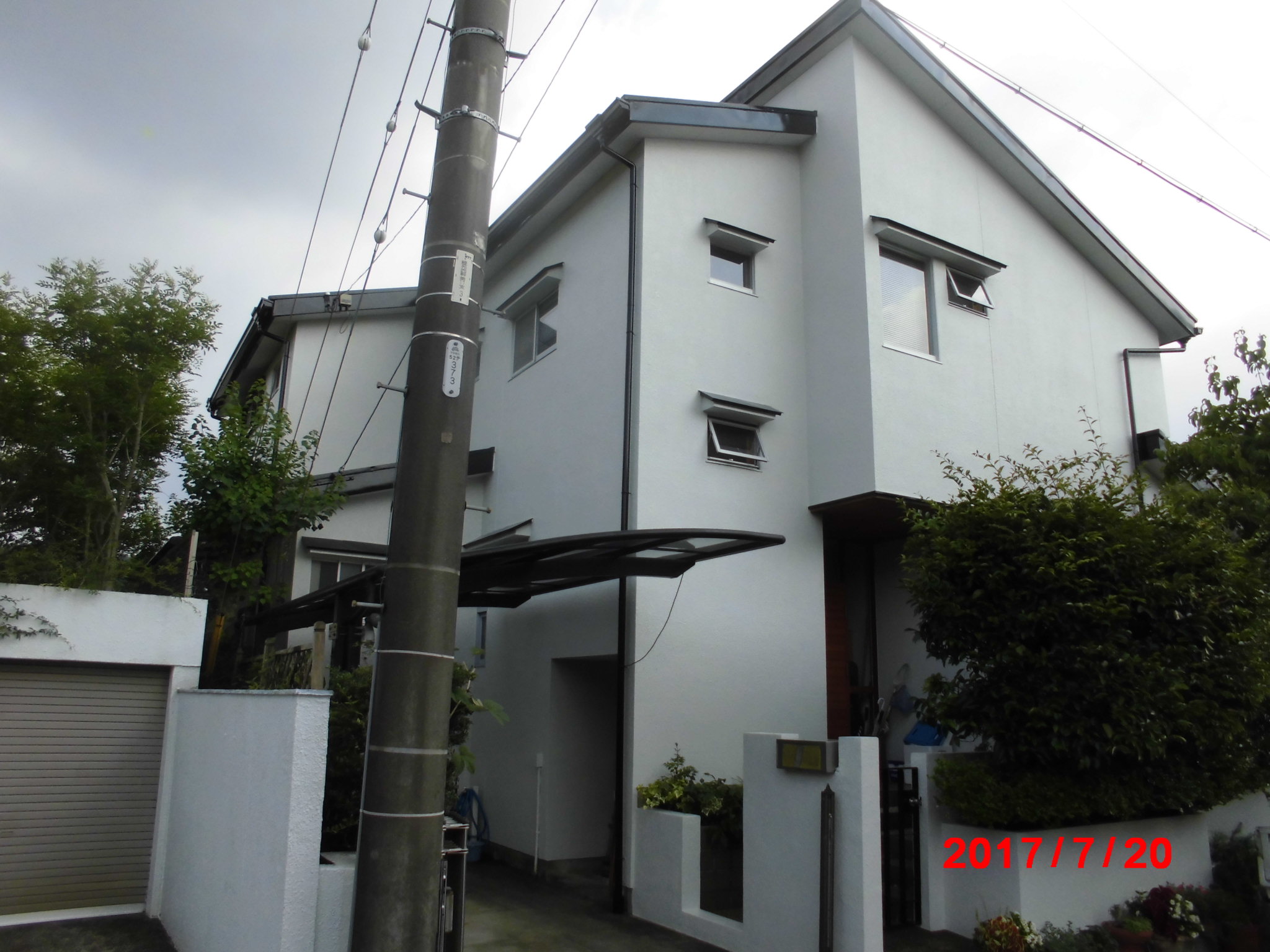 屋根外壁塗装工事 仮設:仮設足場架け払い【1式】 屋根:高圧洗浄【182.0?】 下塗りシーラー 中塗りフッ素 上塗りフッ素 日本ペイントファイン4Fベスト【182.0?】 外壁:高圧洗浄【178.0?】 中塗りシリコン塗装日本ペイント【178.0?】 上塗りシリコン塗装日本ペイント【178.0?】 付帯:コーキング補修【1式】 軒天ケンエース2回塗り【42.0?】 鼻隠し、破風板シリコン2回塗り【60.5?】 軒樋シリコン2回塗り【48.0m】 たて樋シリコン2回塗り【47.0m】 雨戸、戸袋シリコン2回塗り【1式】 塀塗装シリコン2回塗り両面【1式】 カーポートポリカ脱着 玄関軒天キシラデコール 西面FIX窓コーキング(ゴム劣化)