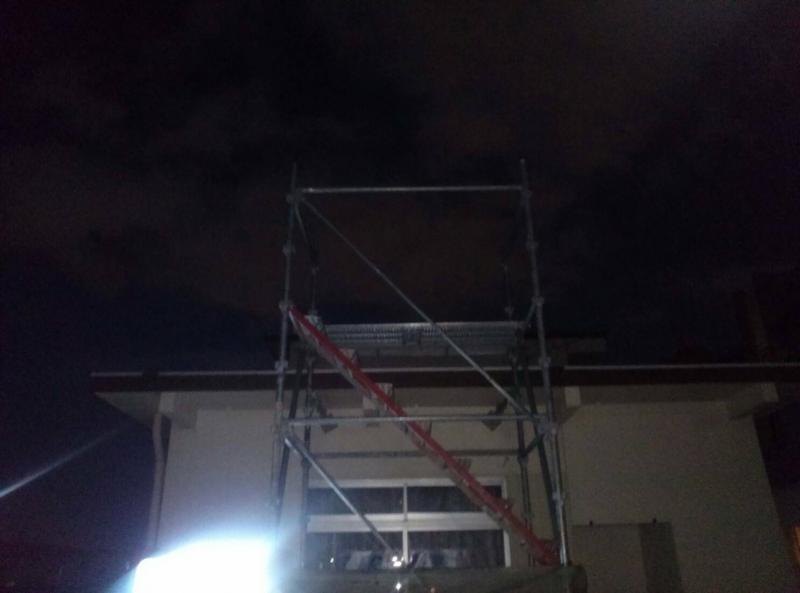 防水改修工事 仮設:仮設昇降用足場【1式】 室外機脱着【1台】 既存ゴムシート部分:ケレン・清掃【4.9?】 既存防水層撤去・廃材処理・全体の30%位【14?】 塩ビ用緩衝シート貼り・床面のみ【49?】 改修用ドレン取付【3セット】 端末コーキング処理【7.8m】 既存FRP部:層間プライマー塗布【22?】 ウレタン塗膜防水、密着工法ZHM-200工法【22?】 諸費:諸経費【1式】