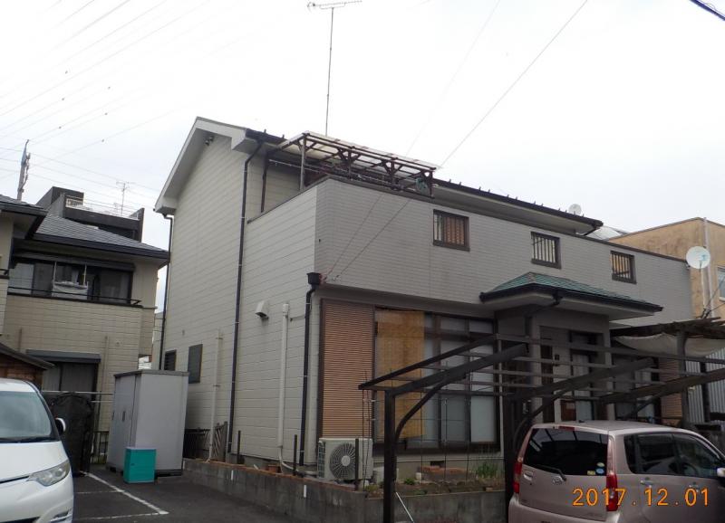 屋根塗装工事 仮設:仮設足場架け払い【1式】 屋根:高圧洗浄【82.3㎡】 下塗りシーラー【82.3㎡】 中塗り【82.3㎡】 上塗り【82.3㎡】 諸費:搬入搬出、養生、清掃等【1式】 破風補修工事 破風板金【18m】 破風先端部【5箇所】