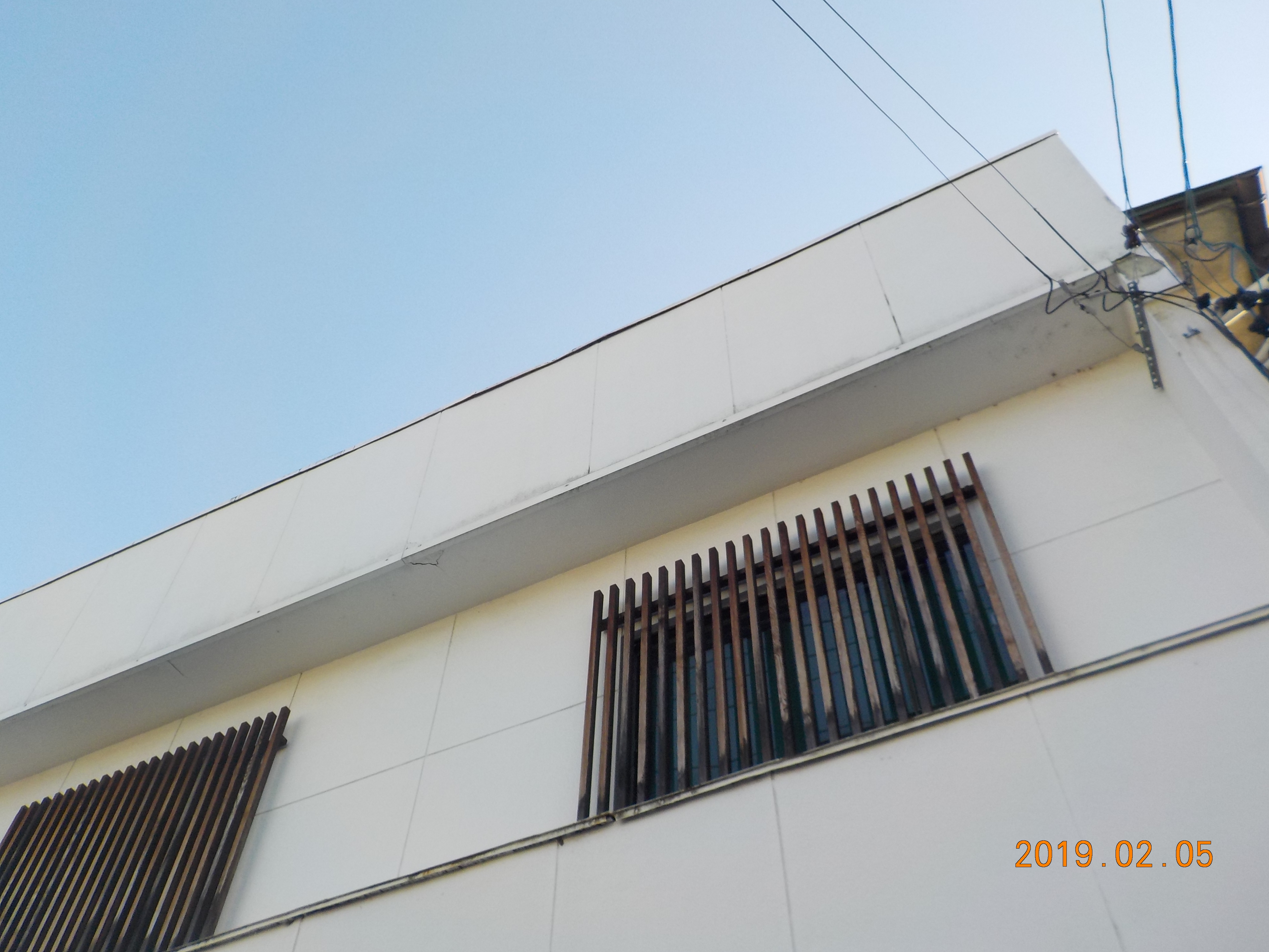 外壁補修工事 仮設 仮設足場架け払いシート養生北面 一式 北面 めくれ部分 板金補修工事 一式 軒天 ケイカルバン増し貼り、同塗装工事 一式 西角部分 左官工事 一式