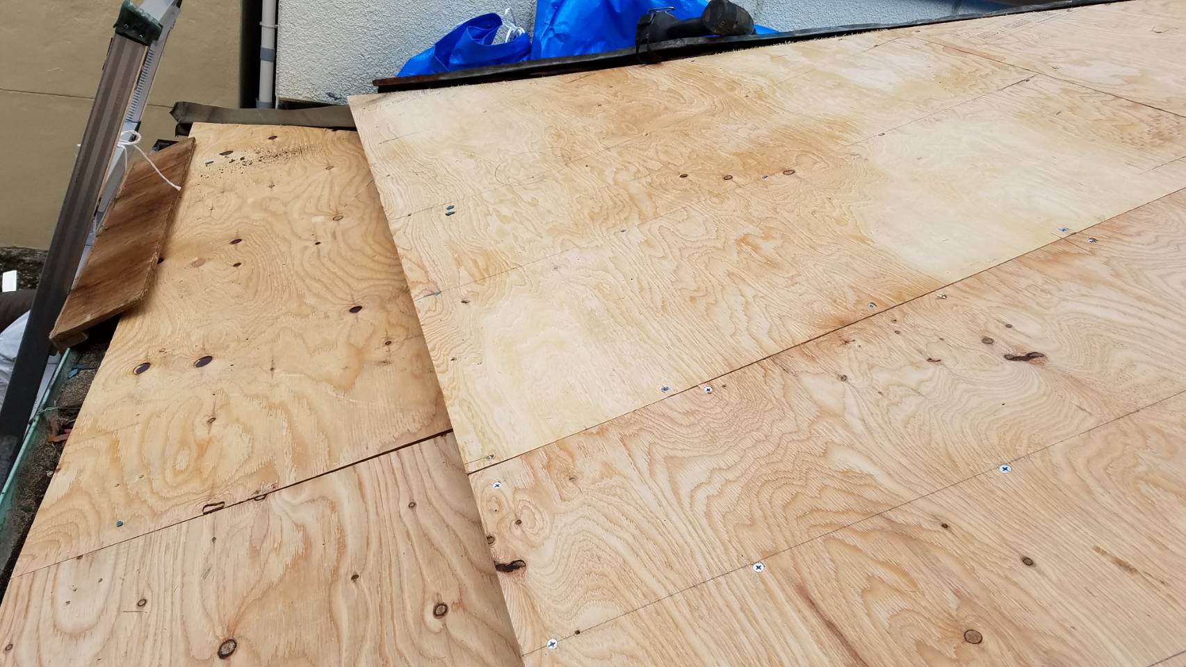 【屋根工事】 既設 トタン捲り10㎡ 1式 コンパネ張り ルーフィング貼り 10㎡ 1式 水切り 1式
