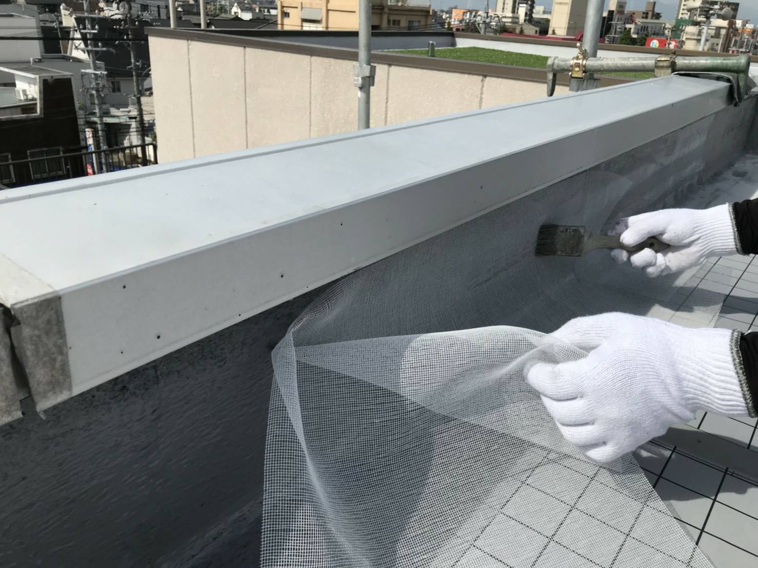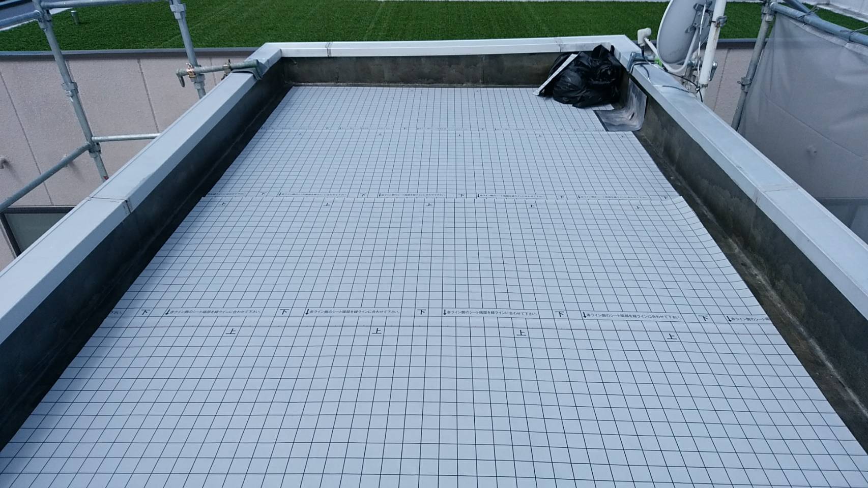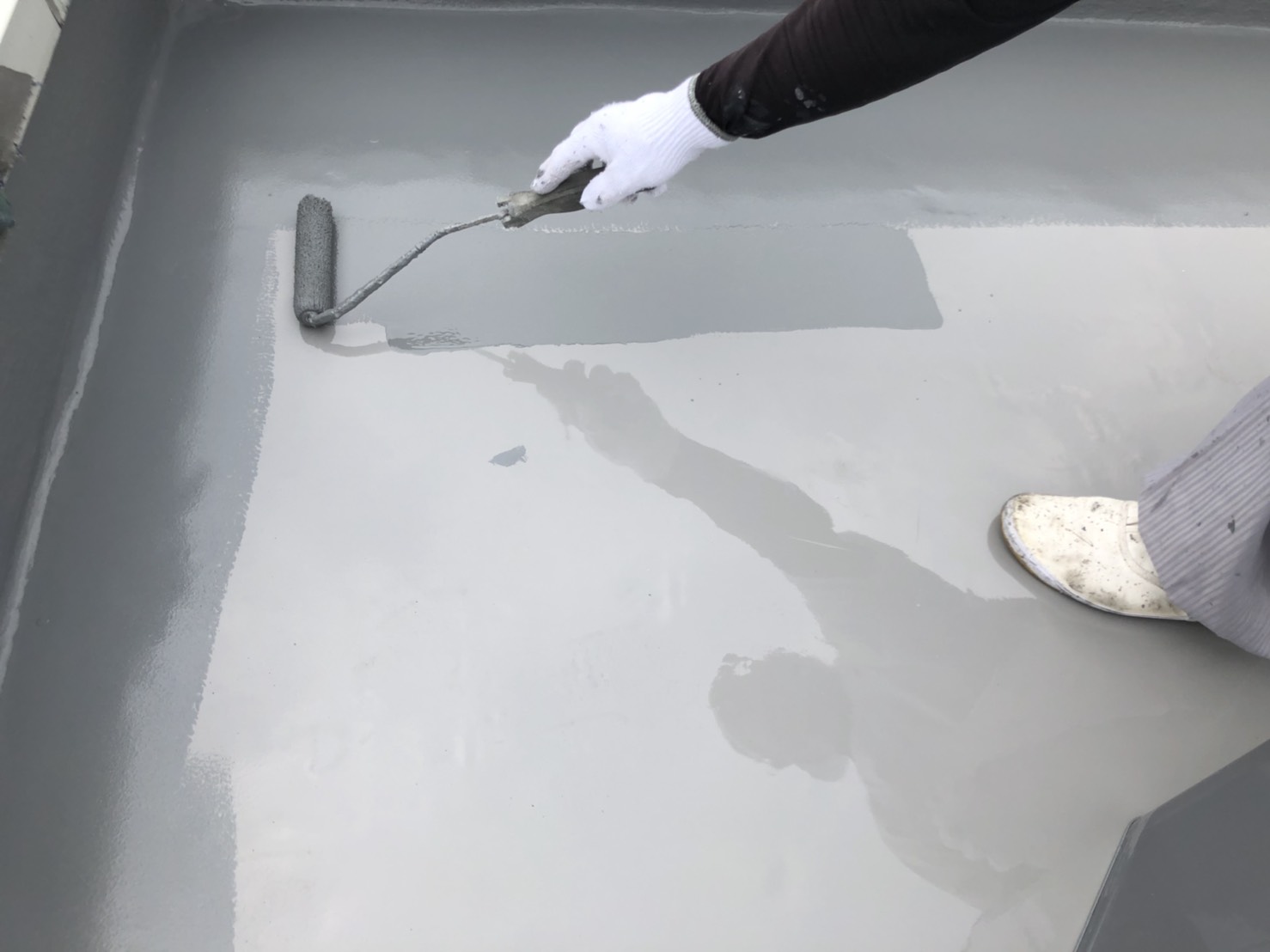 屋上PH:既設防水層撤去、処分、下地処理、ウレタン塗装防水、改修用ドレン、端末コーキング ベランダ内部塗装、軒天塗装