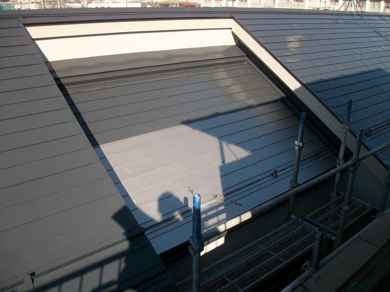 屋根のトップライト大・小2ヶ所の撤去と屋根材張り工事、外壁塗装工事を行わせていただきました