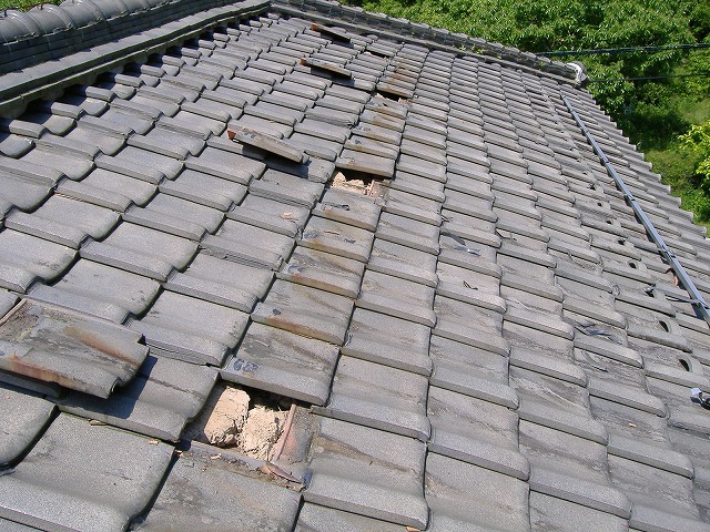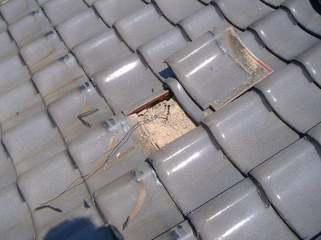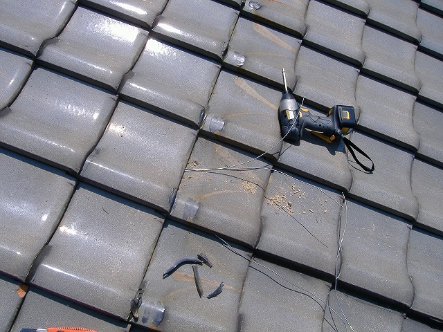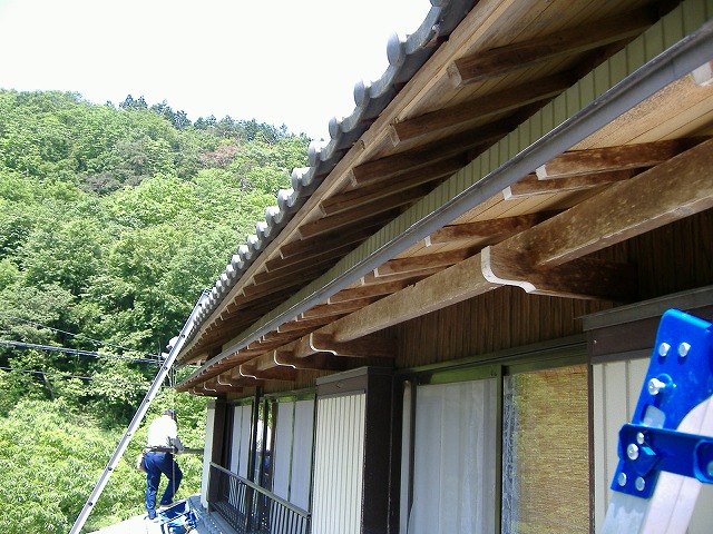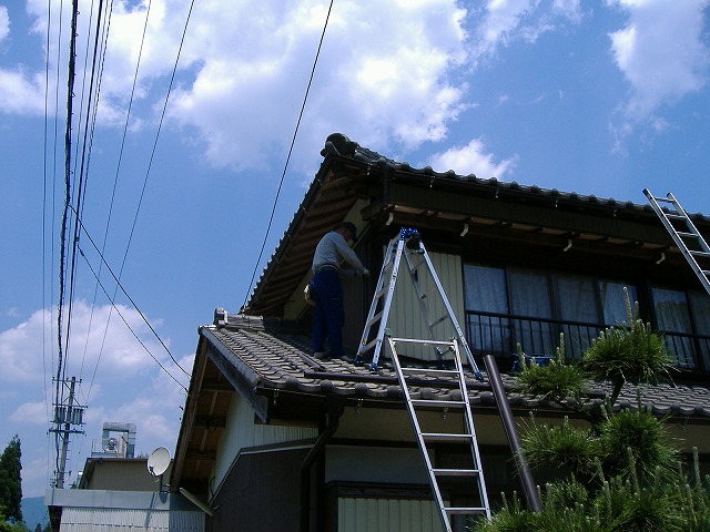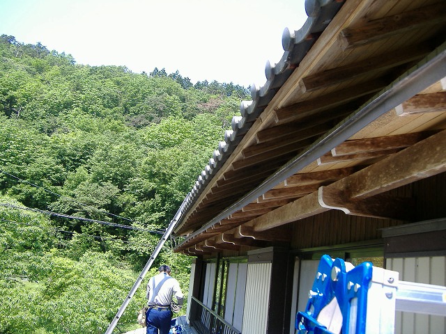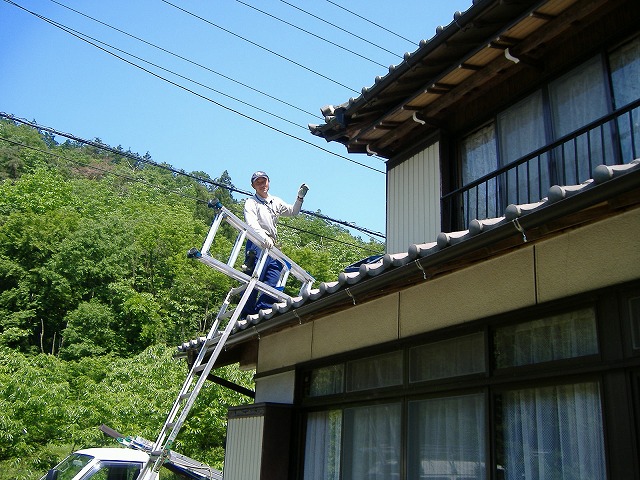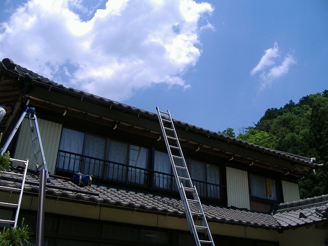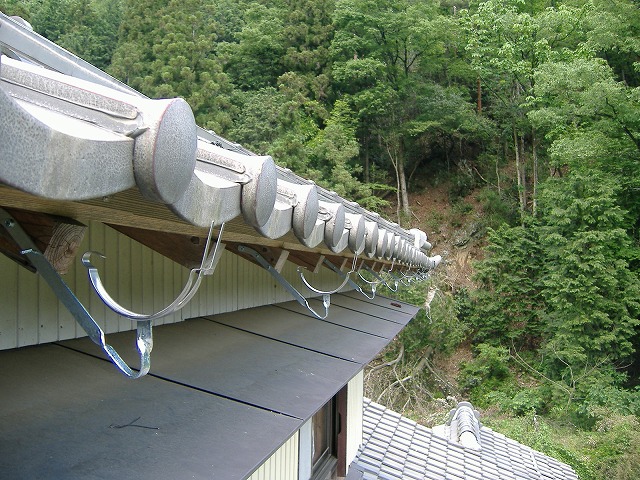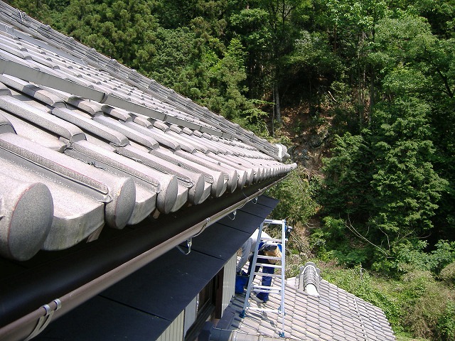 雨どいの補修工事と瓦のラバー止め工事を行わせて頂きました