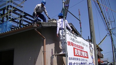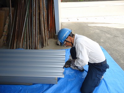 スレート屋根のカバー工事、外壁トタンの張替え、シャッター周りの塗装、雨どいの架け替えを行わせていただきました。