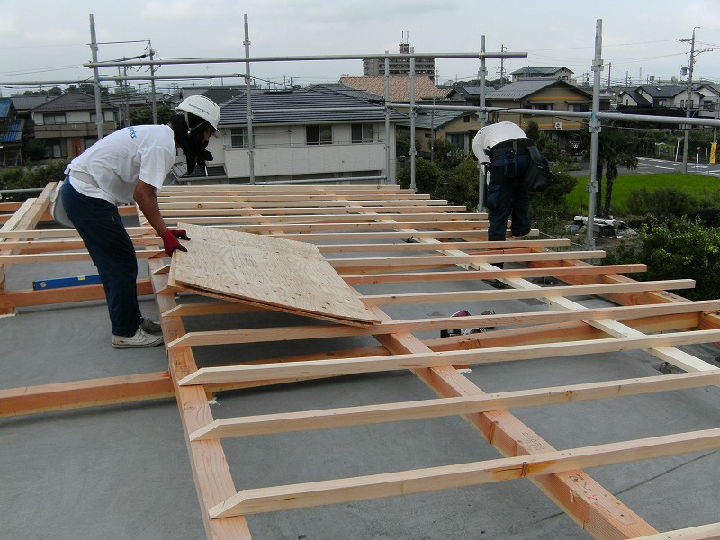 屋根板金カバー工事: 仮設足場架け払い・シート養生【1式】 木造作:木下地(土台、母屋、東、垂木、コンパネ)【85.8平方メートル】 大工手間 釘、金物等含む【1式】 レッカー使用代(オペレーター込)【1式】 屋根:ルーフィング【90.1平方メートル】 たて平ガルバニウム鋼板【90.1平方メートル】 棟(下地込み)【6.6メートル】 雪止め【43ヶ所】 鼻隠し板金巻き【16.9メートル】 妻面板金処理【20.6メートル】 片流れ部棟下板金処理【3.7メートル】 雨樋:軒樋パナソニックPC50 金具込み【10.4メートル】 たて樋60金具込み【10メートル】 集水器【3ヶ所】 玄関:補強柱 内装:廊下 トイレ 壁紙 折板屋根:樋 集水器増設(軒天含む) たて樋つまり直し