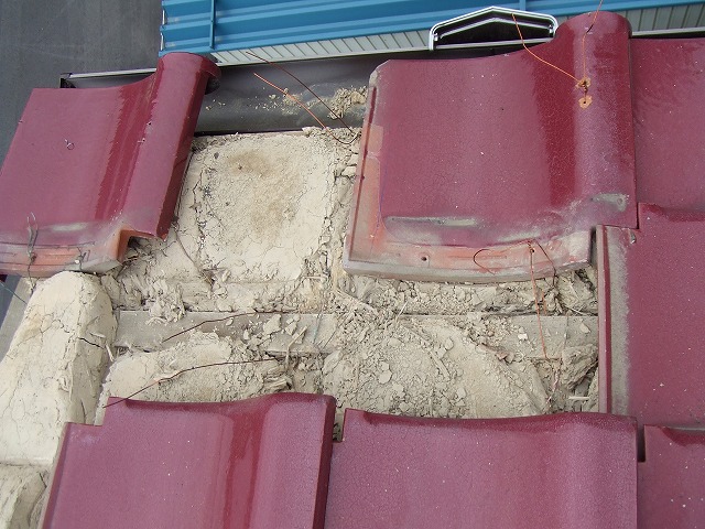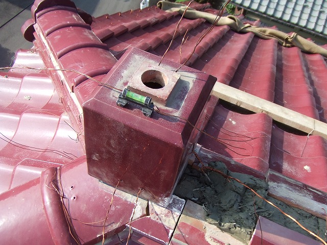 棟の葺き戻し工事、ソーラー撤去、添袋工事、瓦止めラバー工事、万十瓦、ケラバ瓦付け直し、雪止め付け直し工事を行わせて頂きました。